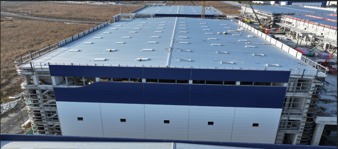 濟寧一建鋼結(jié)構(gòu)工程有限公司承建的金屬屋面及維護工程,涉及1#-4#物流倉庫、高架立體庫。倉庫跨度80米,屋面標(biāo)高34.1米,為雙向找坡結(jié)構(gòu)。該項目建設(shè)規(guī)模大、工期緊、技術(shù)精度要求高、工況復(fù)雜,自項目開始施工。公司對現(xiàn)場管理嚴格要求,積極配合業(yè)主及總包的整體調(diào)配,施工嚴格執(zhí)行施工方案,遵循規(guī)范標(biāo)準(zhǔn),合理安排人、機、料等,戮力同心將馬士基臨港旗艦倉項目打造成精 品工程、優(yōu) 質(zhì)工程。